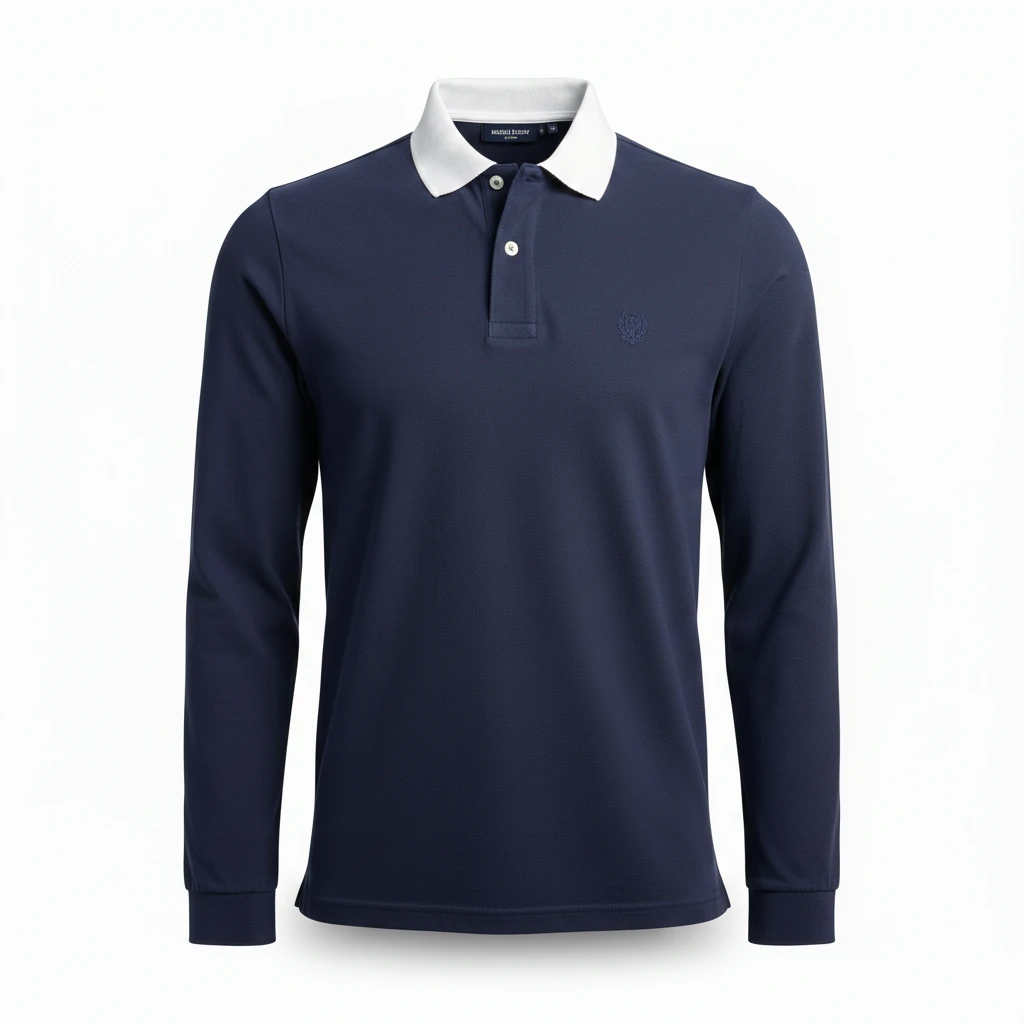 A long sleeve polo shirt with a stylish design that blends classic and casual looks.
